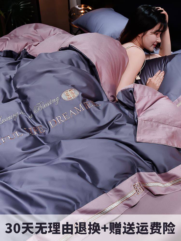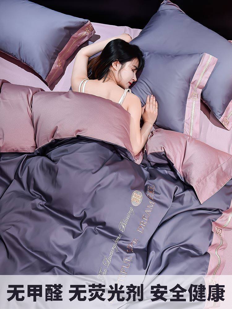 Mengjie home textile four-piece set of pure cotton cotton spring and autumn summer long-staple cotton high-grade bed sheet quilt cover for sleeping on the bed