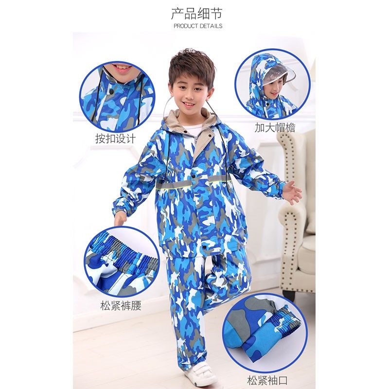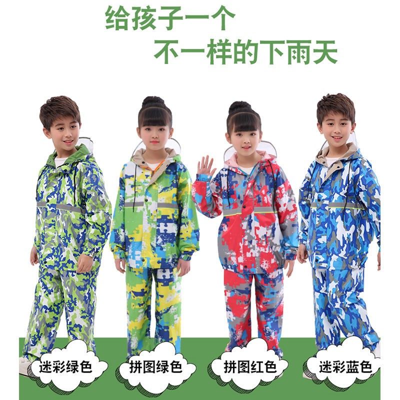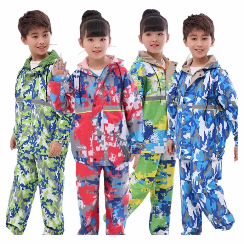 New children camouflared raincoat suit Two-style rain pants waterproof nursery school students bike riding hiking rain cape