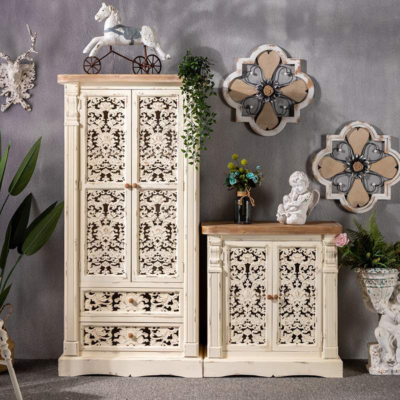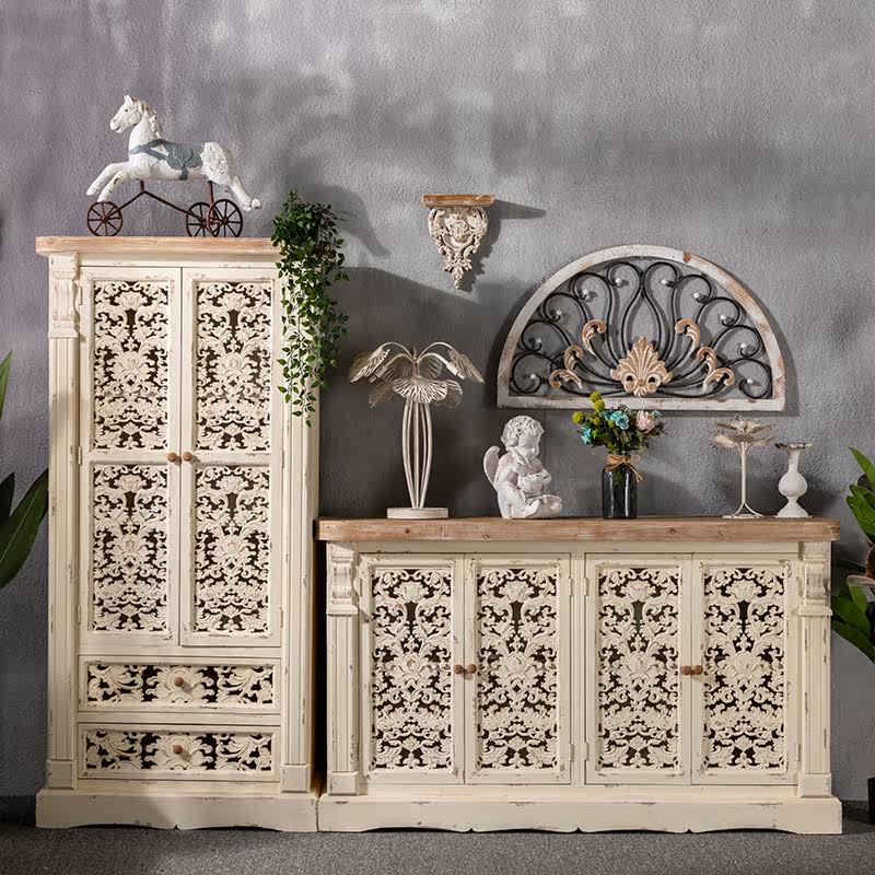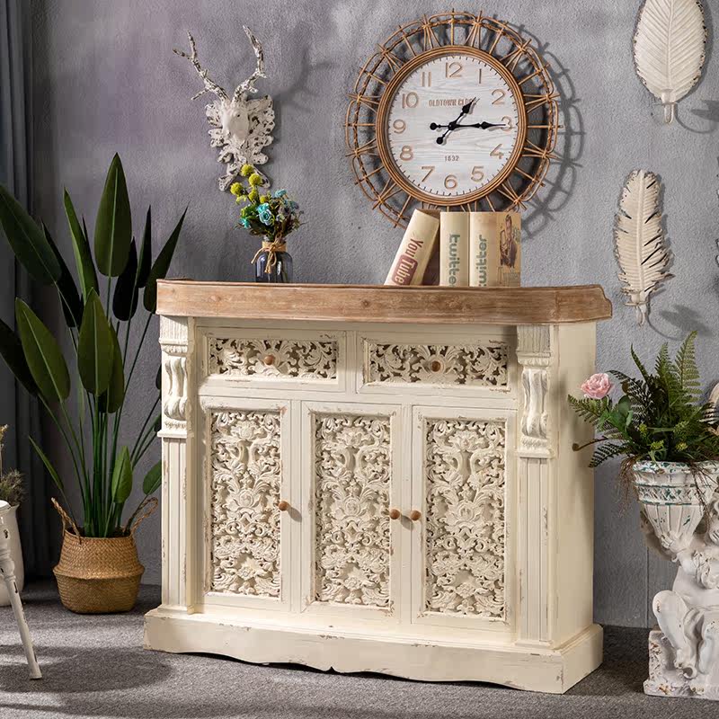 French solid wood retro porch cabinet carved wine cabinet living room storage decoration cabinet entry foyer cabinet homestay cash desk
