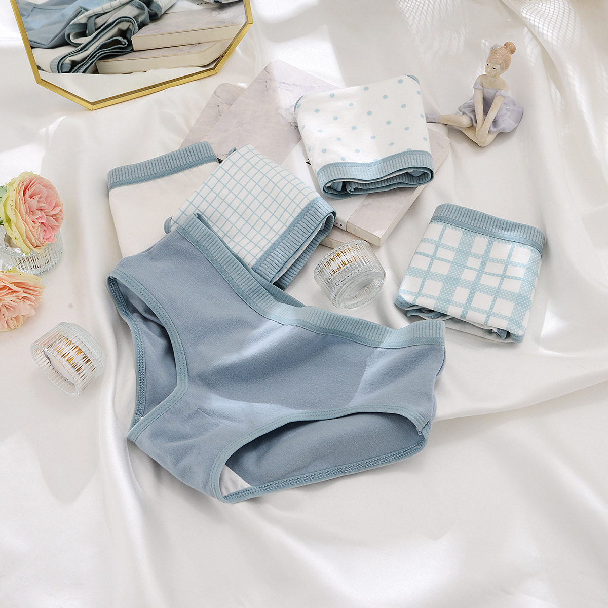 Meow Gray Blue Set Comfortable Breath Girl Student Triangle Trouser Metal Blue Skytie SkyTerminal