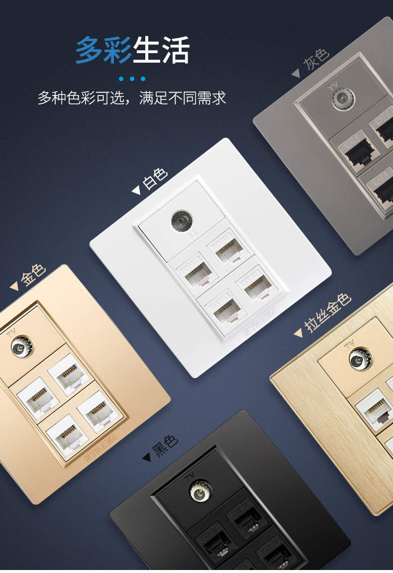 TV Four supersix shielded mesh routes socket (white) TV Four supersix shielded mesh routes socket (gold) TV Four supersix shielded mesh routes socket (grey)