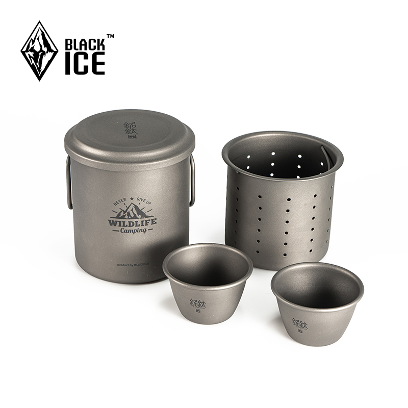 8264-Northland Black Ice Pure Titanium Double Tea Set Portable Outdoor Travel Tea Set Kung Fu Teapot Titanium Cup