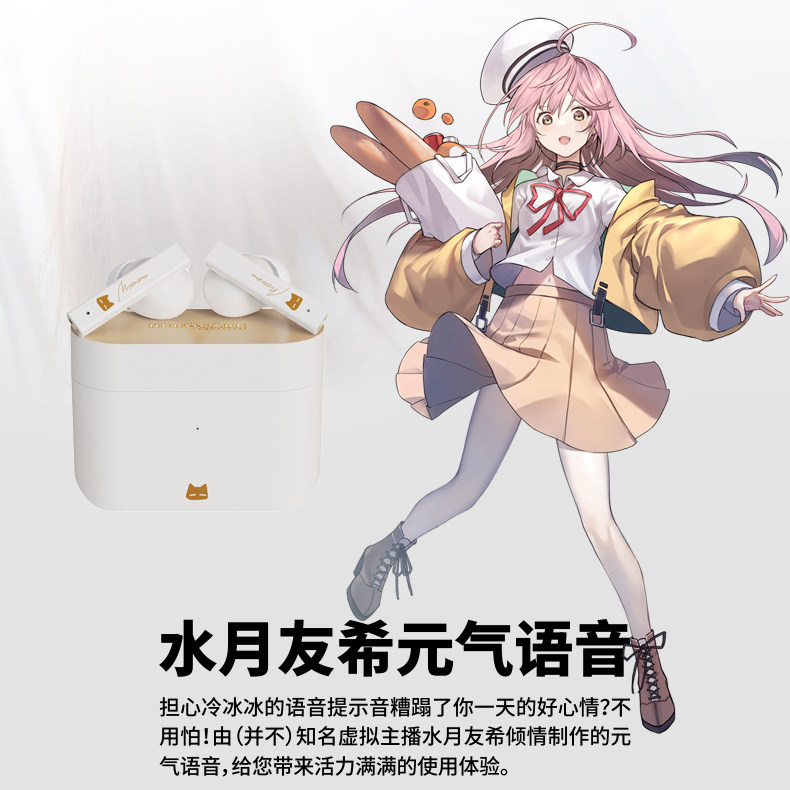 Water Moon Rain New NEKOCAKE Cat Cake ANC Active Noise Cancelling TWS Wireless Bluetooth Headphones White and Black