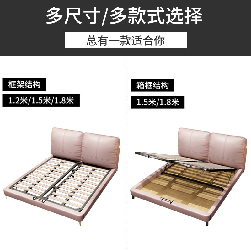 Princess girl leather bed light luxury bed modern minimalist creative Nordic net red double bed Italian pink wedding bed