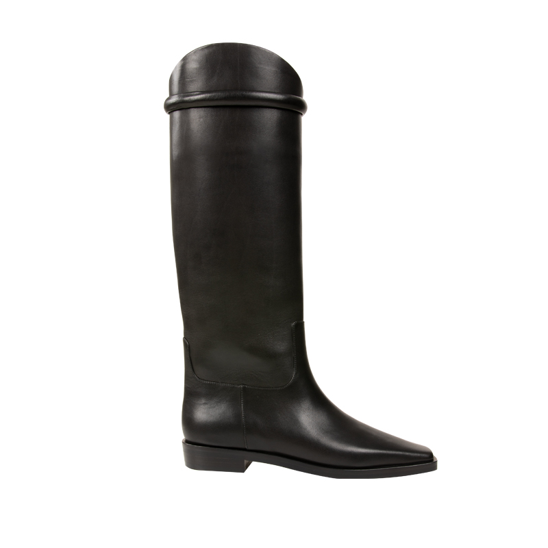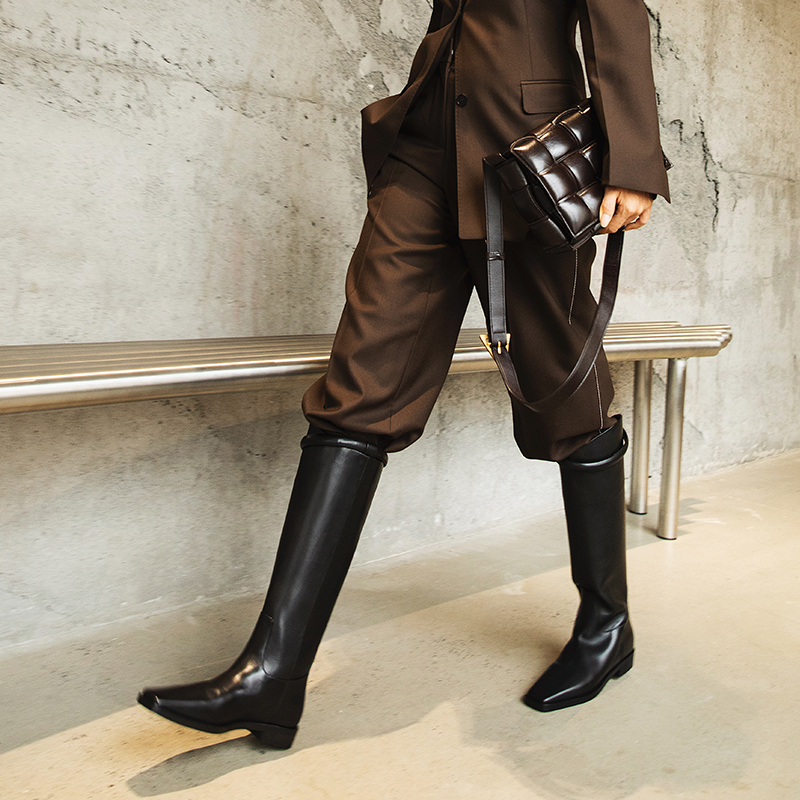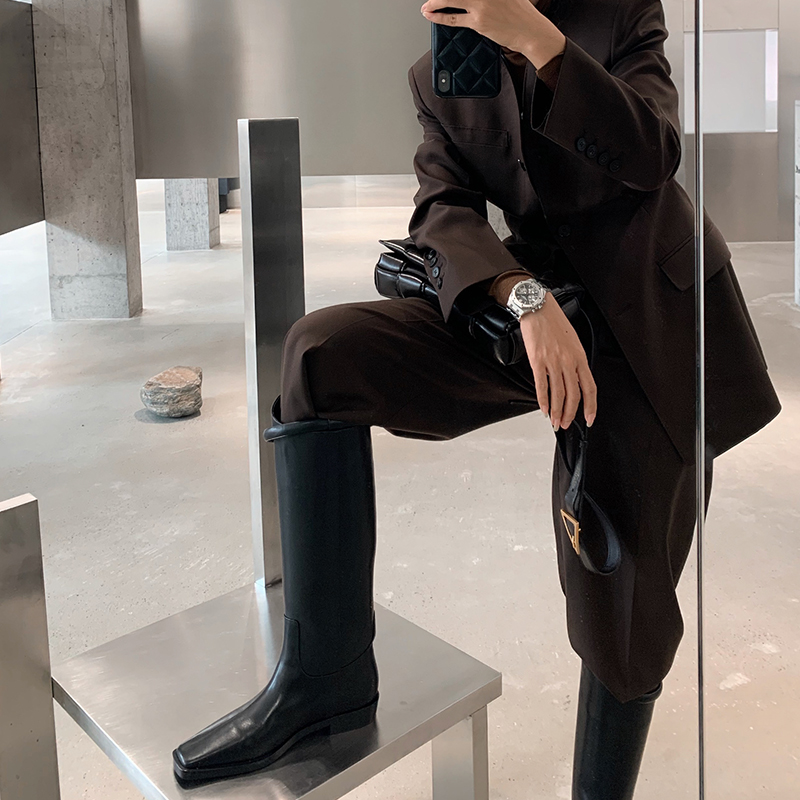 ALEXSARA2022 autumn winter new genuine leather inclined head straight drum riding boot square head slim high cylinder boot long cylinder boot