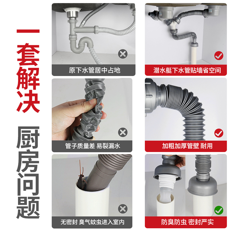 Submarine kitchen sink sink pipe fittings double-slot washbasin sink drain pipe deodorant sink sink set