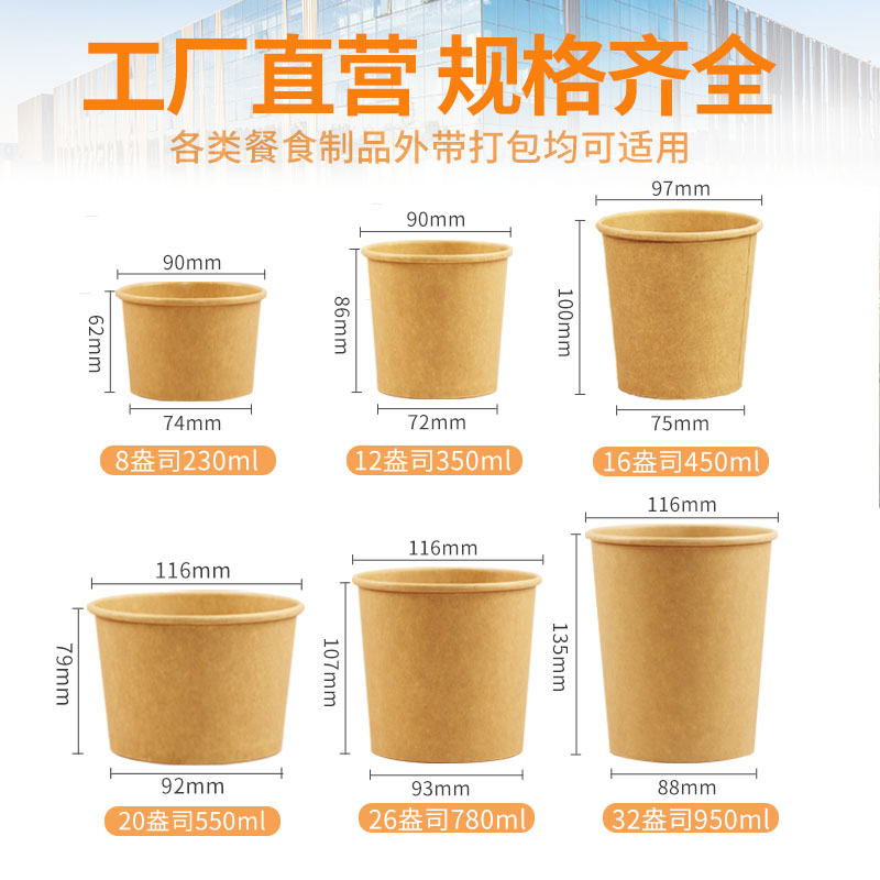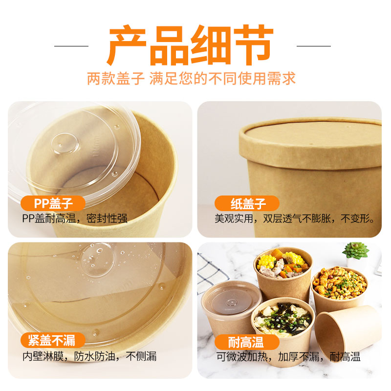 Thickened kraft paper soup bucket disposable packaged lunch box bowl with lid commercial takeaway round porridge bucket high-grade food grade