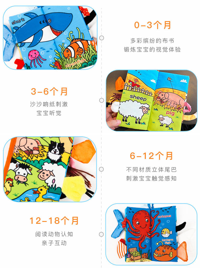 Baby Early Teach Cloth Book Louder Paper Pinching Toys Ripping Without Breaking Entrance Baby Puzzle Animal 6 Months Tail Cognition