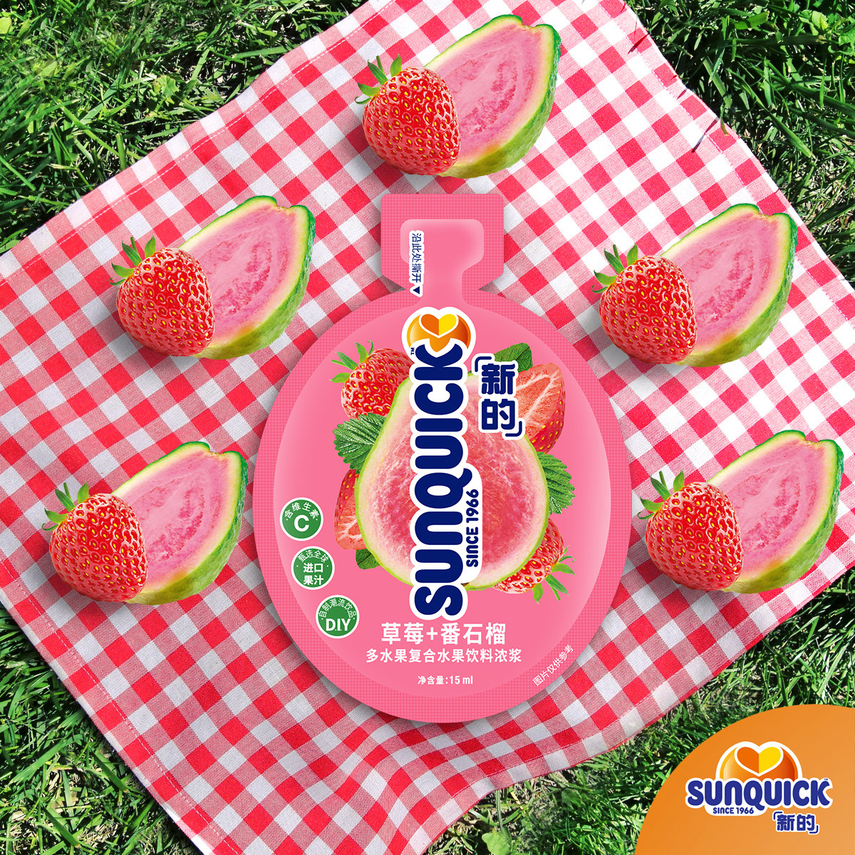 Sunquick new concentrated cherry raspberry lychee rose guava strawberry guava juice 15ml bag thick pulp