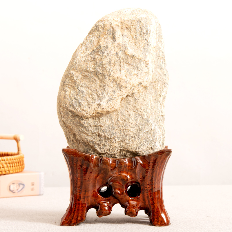 Solid wood chishstone base with groove free of digging trough the cobblestone irregular Taishan stone groove pendulum with universal care