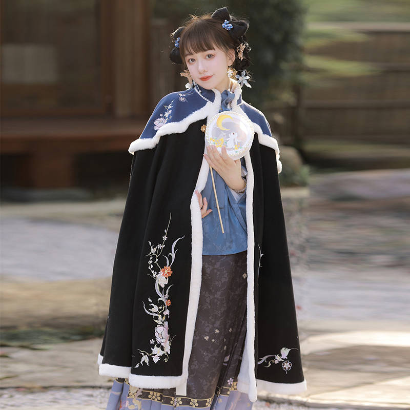 Apricot plush thickened cloak (sized) Black plush thickened cloak (sized) Orange half sleeve + apricot top + orange horse face skirt Blue half sleeve + blue top + blue horse face skirt Shipping insurance After-sales worry-free