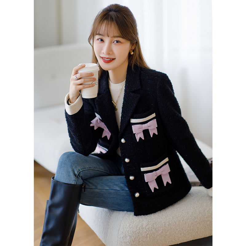 En luxurious custom gentle quartile sweet ~ playful butterfly bow fluffy wool coat coat suit