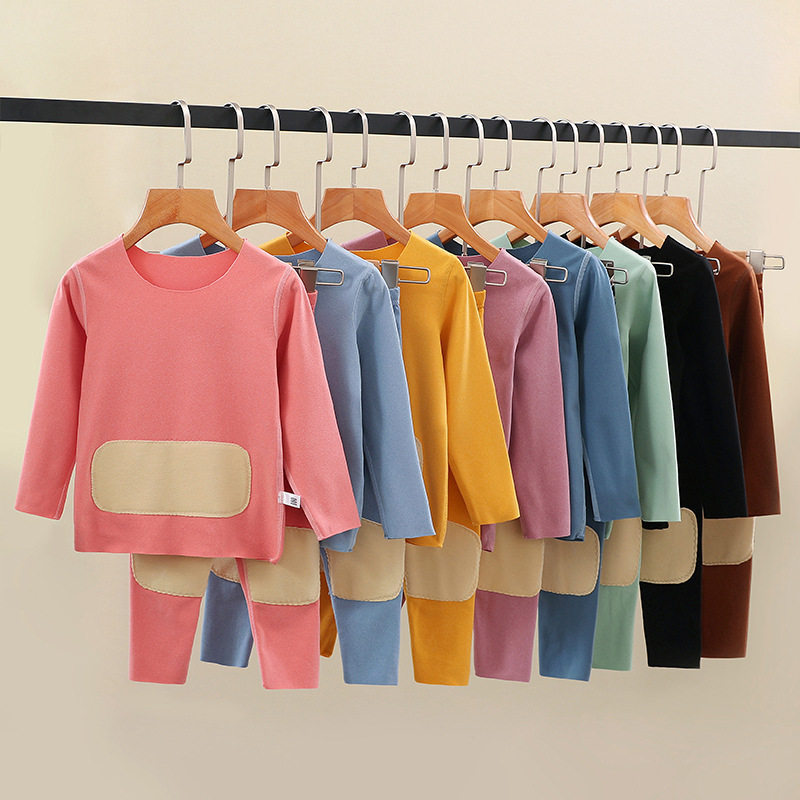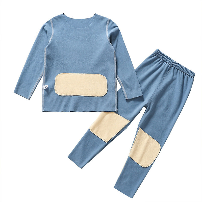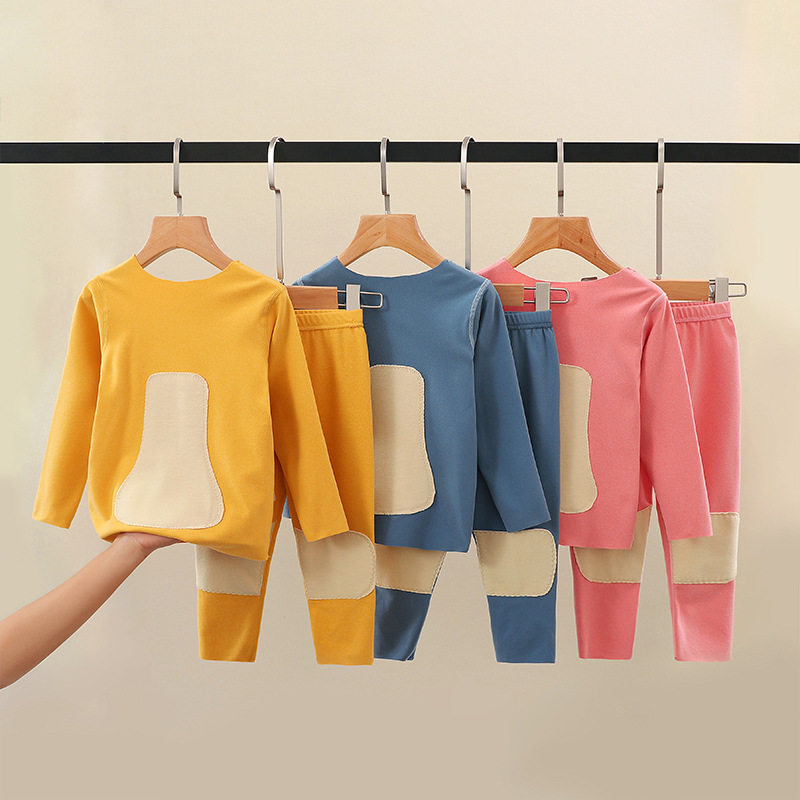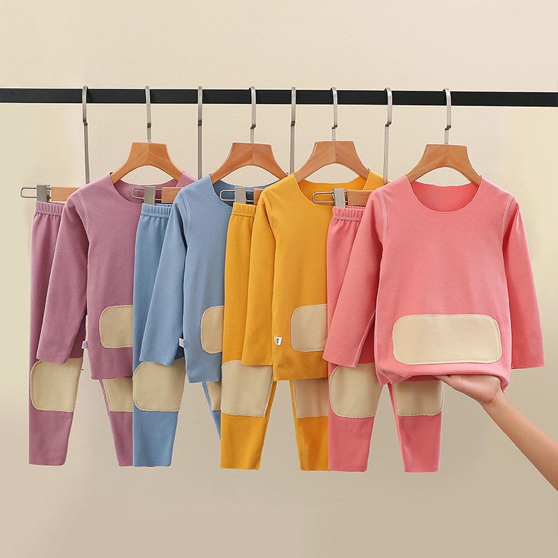 Belly protector back protector De Velvet children's thermal underwear set boy without a trace in the middle of the big boy plus fleece winter girl autumn clothes sanitary pants