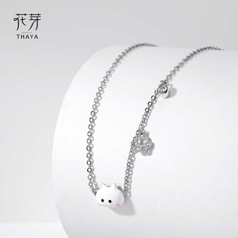 Flower Bud Original Cute Cat Necklace 2021 New Necklace Students Cute and Not Fading Niche Design Clavicle Chain