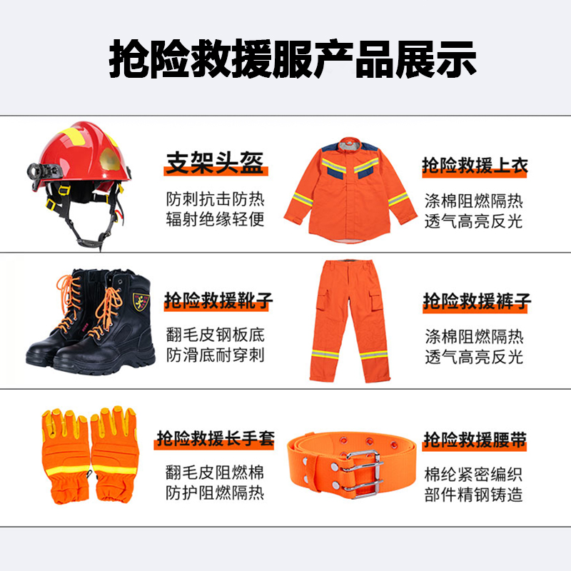 Rescue gloves Rescue hats Rescue boots Belt Goggles Aramid rescue suit (coat underwear) Rescue aid suit 6 pieces of rescue suit 20 type rescue suit 20 type rescue suit