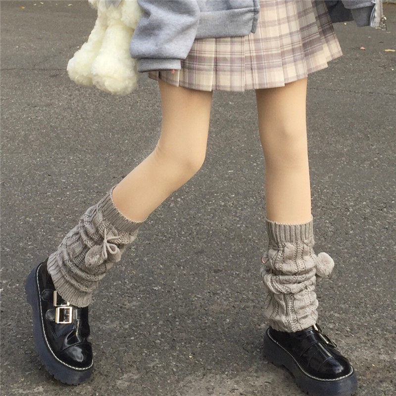 Japanese Soft Sister Lolita Female Cover Sleeve Student JK Uniform Knitted Thick Warm Leg Cover Winter