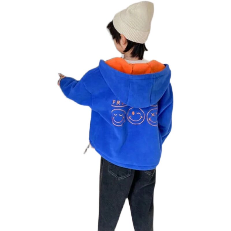 Boys plus velvet thick fried street coat winter fashionable grain velvet 2021 new medium and large winter polar fleece hooded