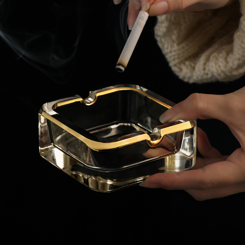 Square cigarette ash (real gold sketching) round the ashtray (true gold sketching)