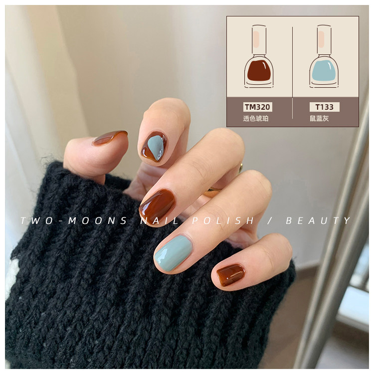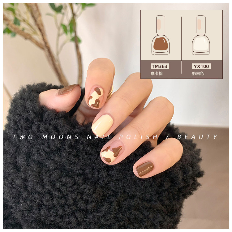 2021 new autumn and winter retro Chinese white nail polish set free of baking quick dry and not tearable tender Moka brown grey curly