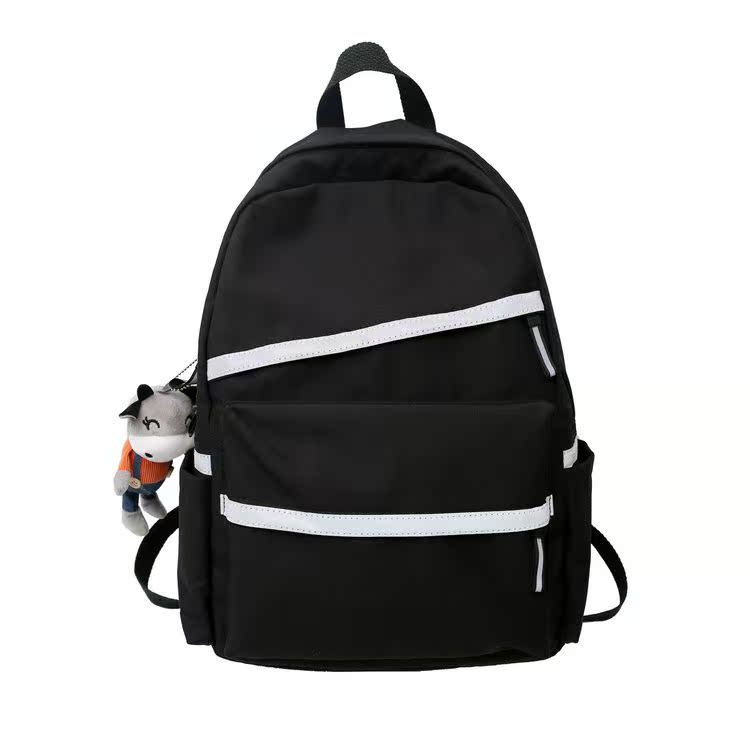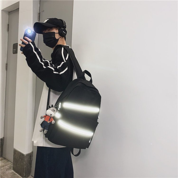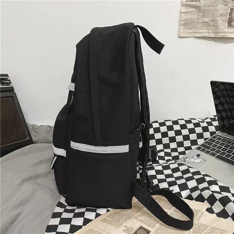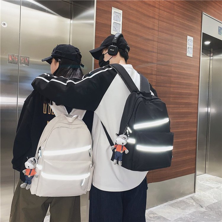 Pure Color Casual Double Shoulder Bag Student School Bag Nylon Waterproof SHOULDER BAG TEENAGERS SAFE REFLECTIVE STRIPS TRAVEL DOUBLE SHOULDER BAG