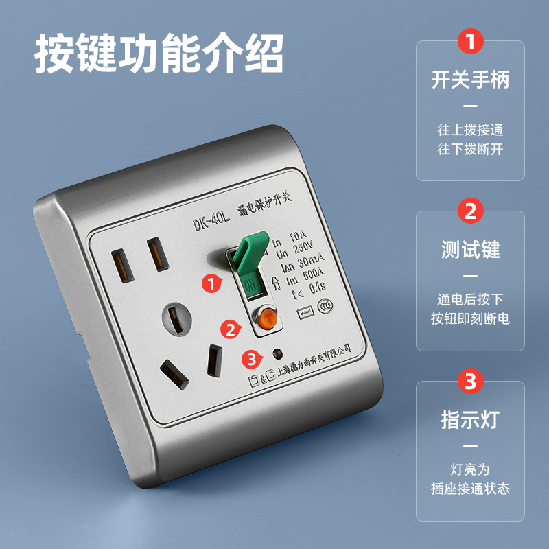 Shanghai Delixi leakage protection switch 3p16A three-hole leakage protection socket air conditioning water heater leakage protector