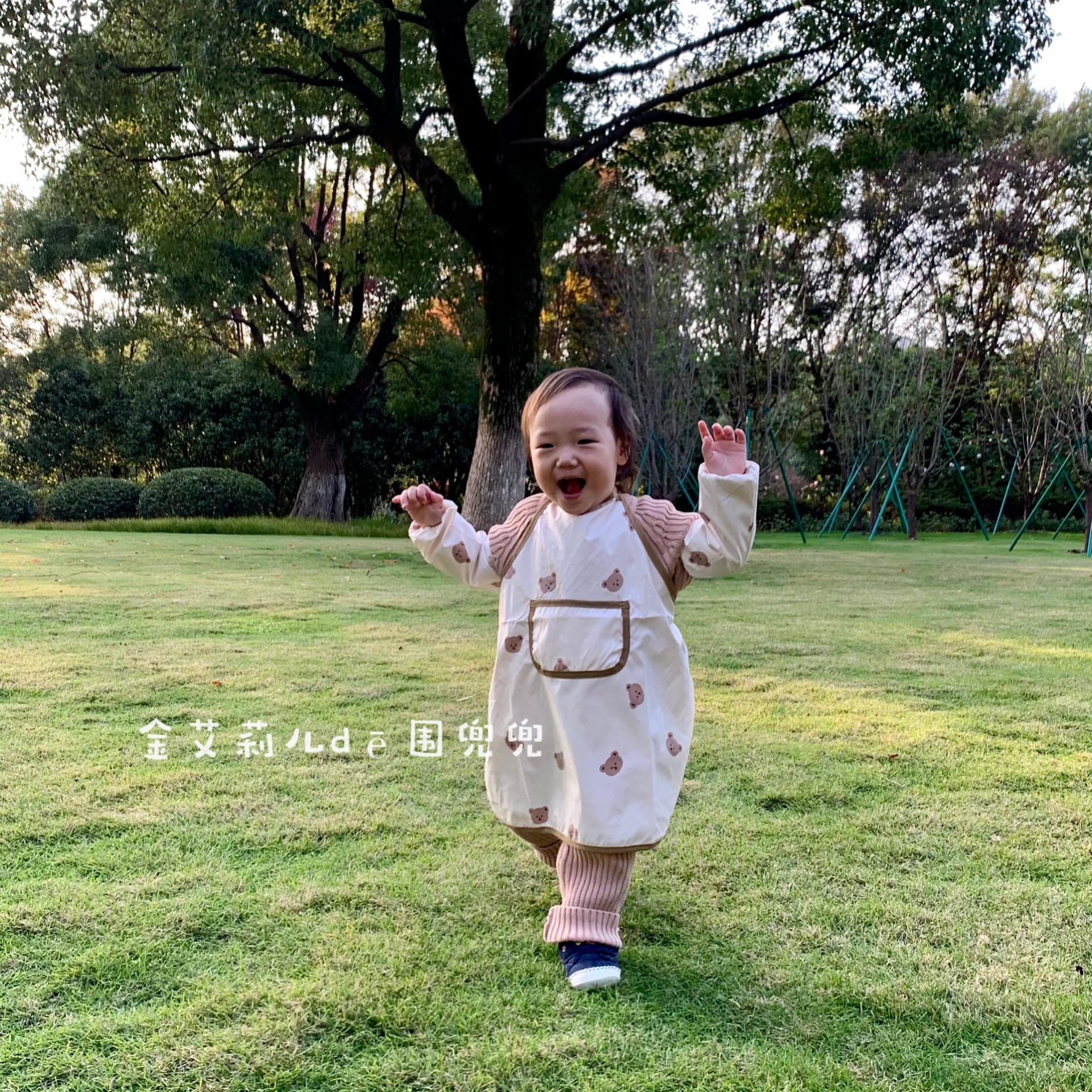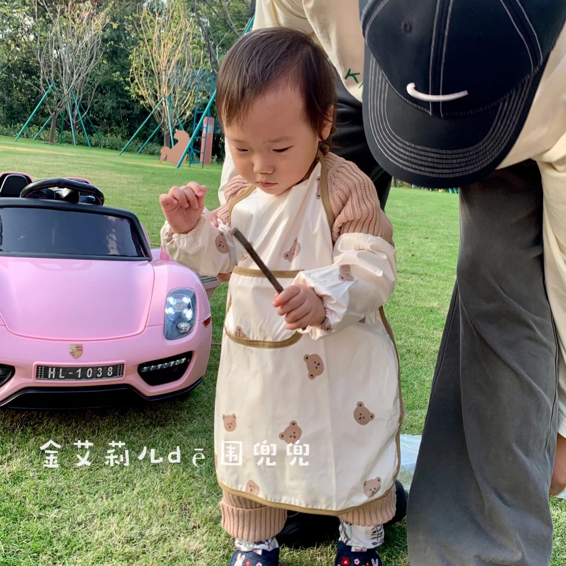 "Golden Ariel Dē Bib" Korean version of the bear waterproof apron sleeve turban painting baby eating bib