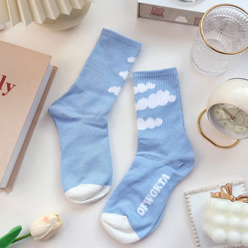 Blue Sky White Clouds Little Fresh Socks Children Spring Autumn Summer Middle Cylinder Socks Men's Chains Tide Students Lovers Net Red Pure Cotton Socks