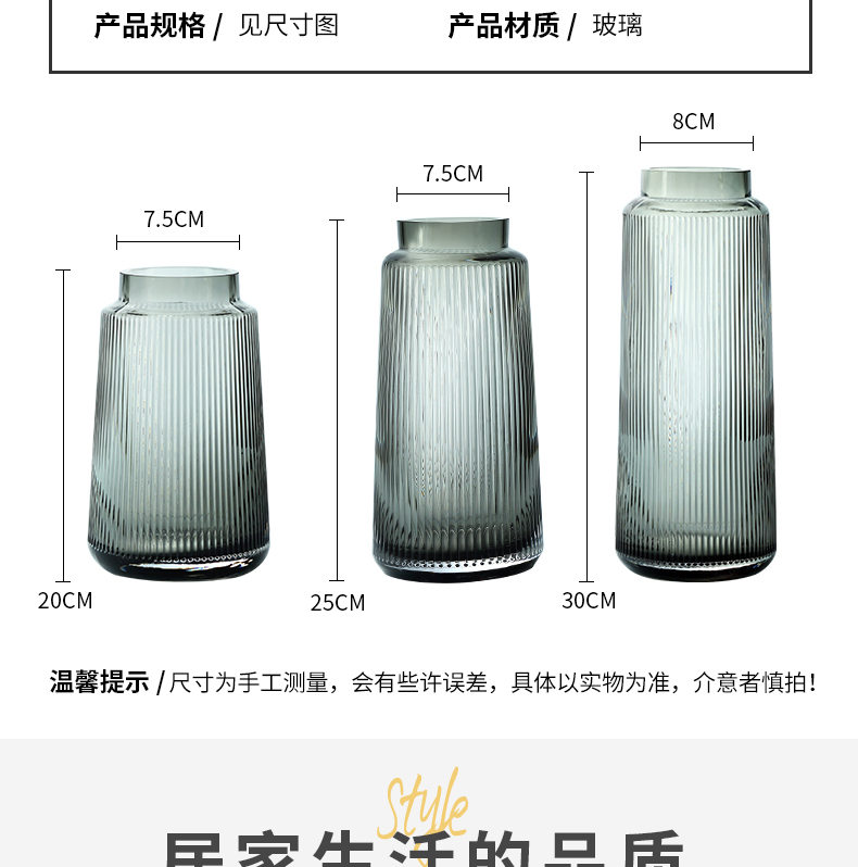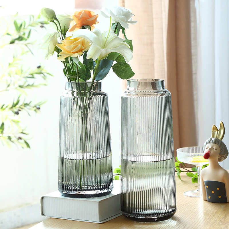 Suqu Classic Vertical Stripe Glass Vase Transparent Big Water Bacon Lilies Flowers Floral floral room Desktop Decorative Pendulum