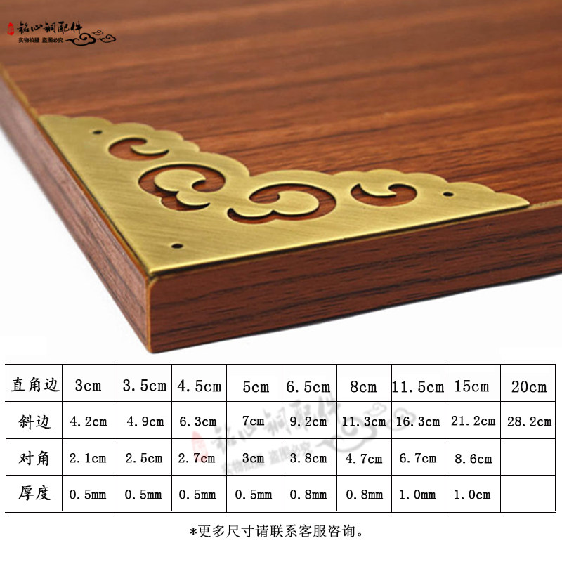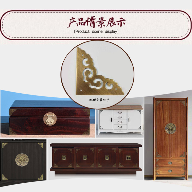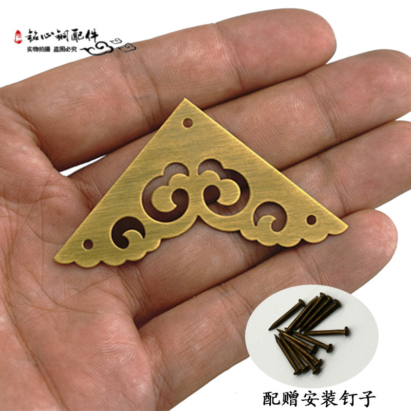 Chinese antique pure copper corner cabinet door decorative corner flower brass single bread corner box corner piece furniture copper accessories