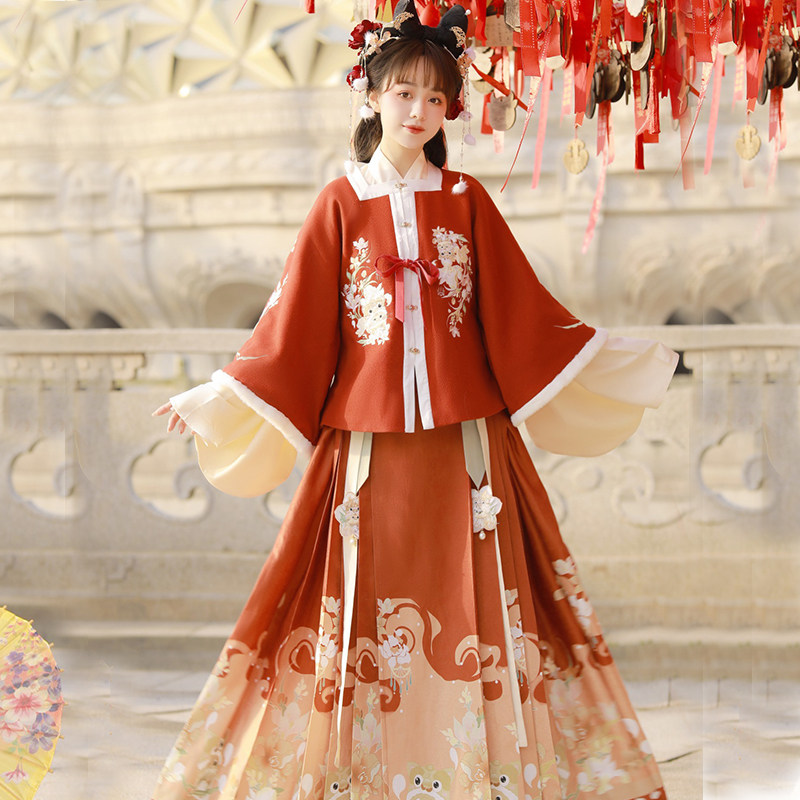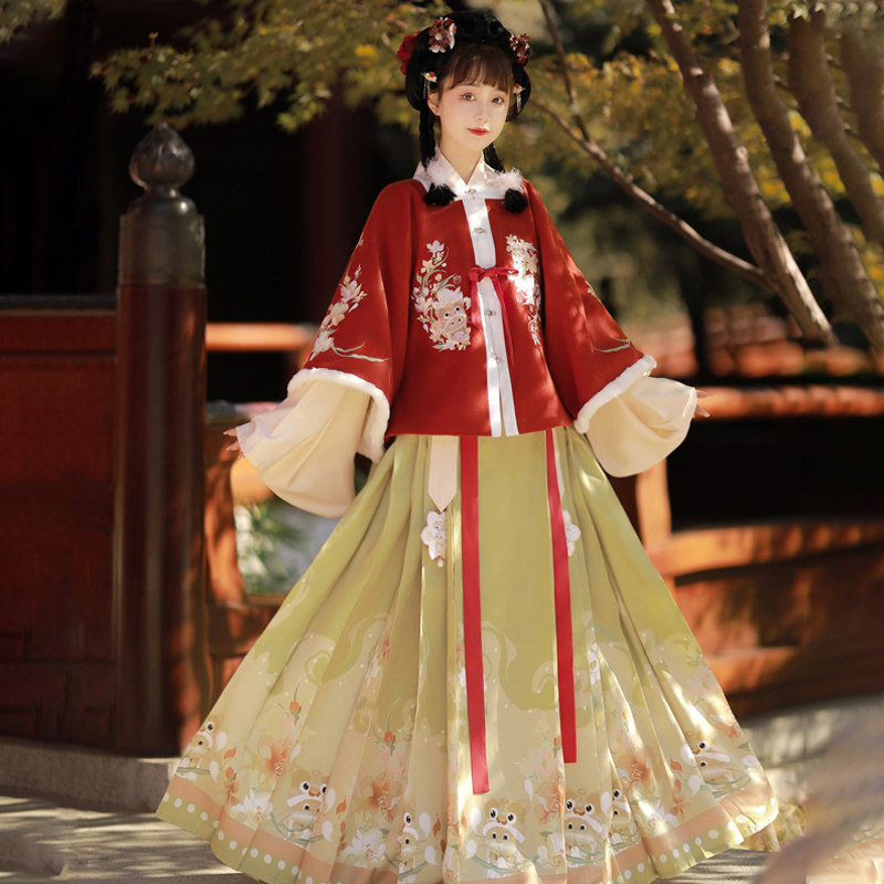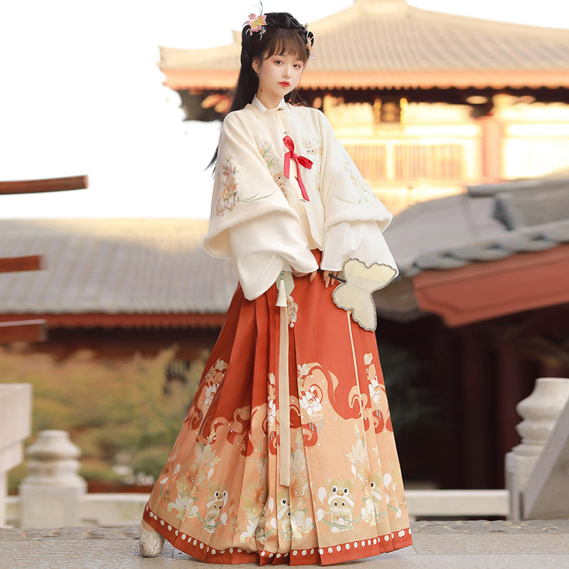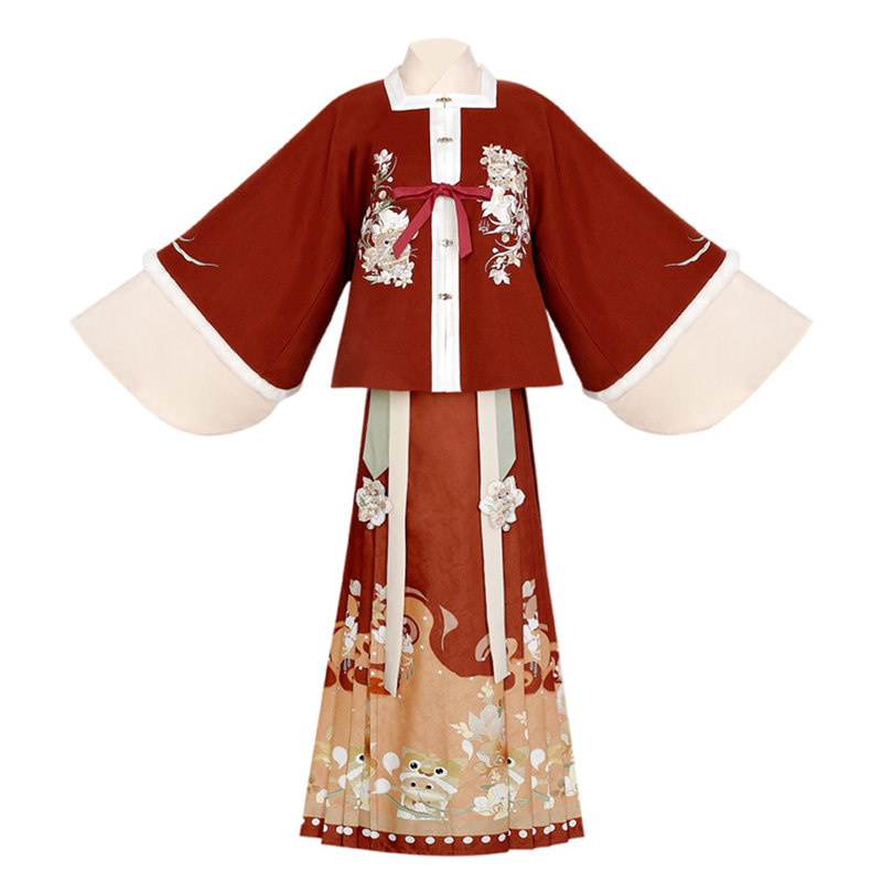 Tiger Tuan Tuan originally created Ming Chinese clothing women plus velvet padded horse skirt Chinese style square collar costume autumn and winter