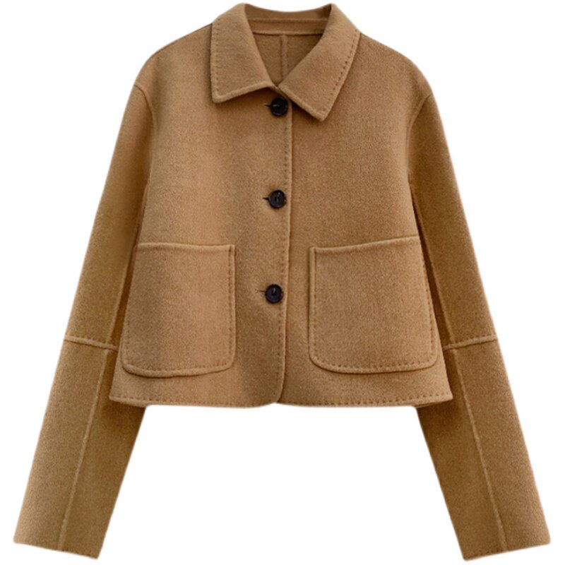 South Korean short double face cashmere big coat woman 2021 Winter new loose slim small sub wool coat tide
