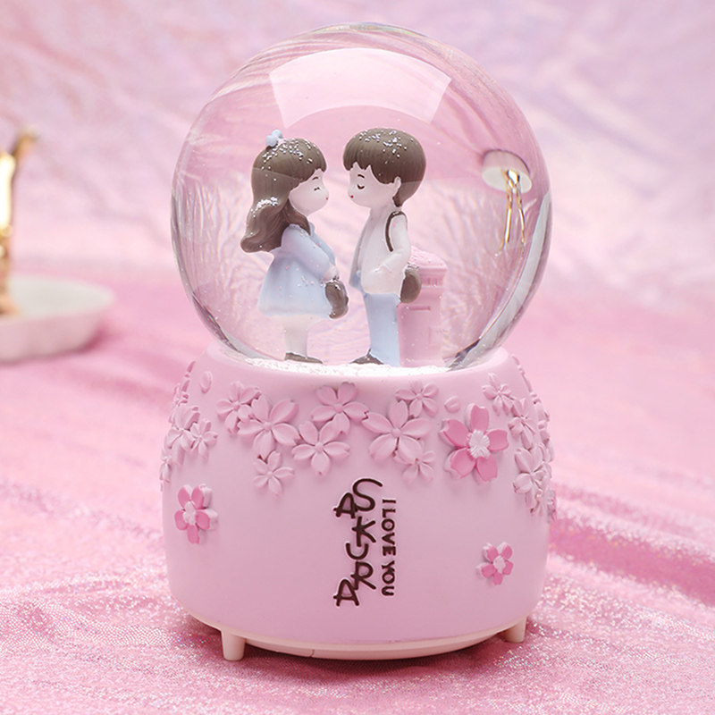 New crystal ball octave box large snow dream colorful glowing music box girl heart princess birthday present