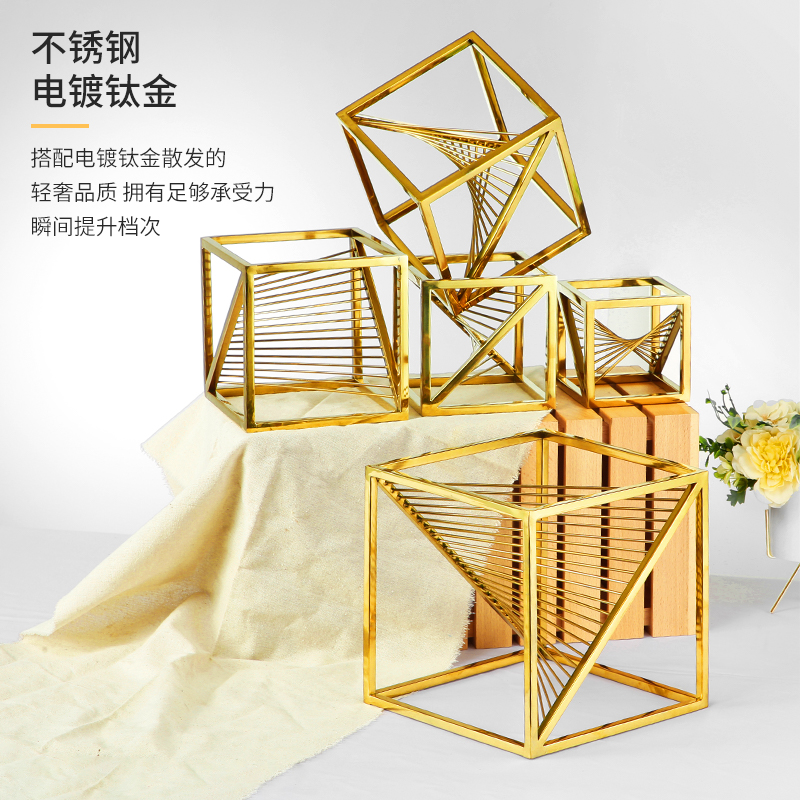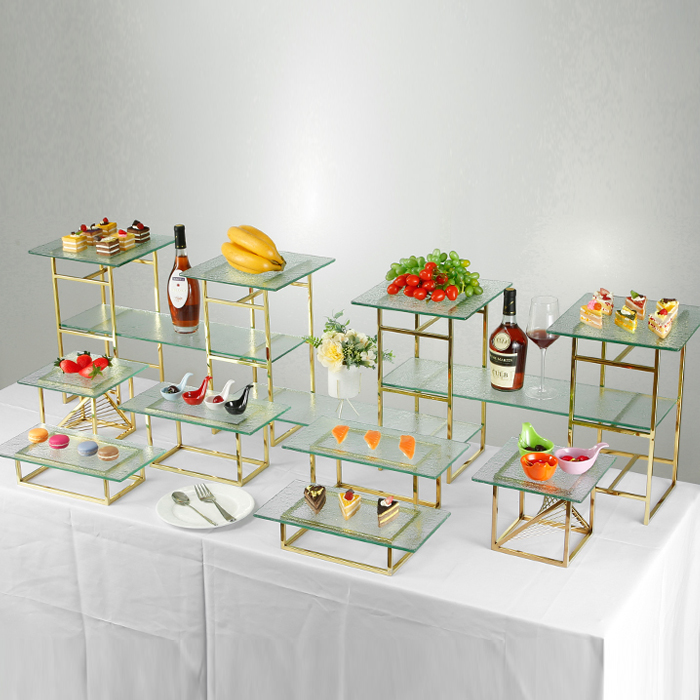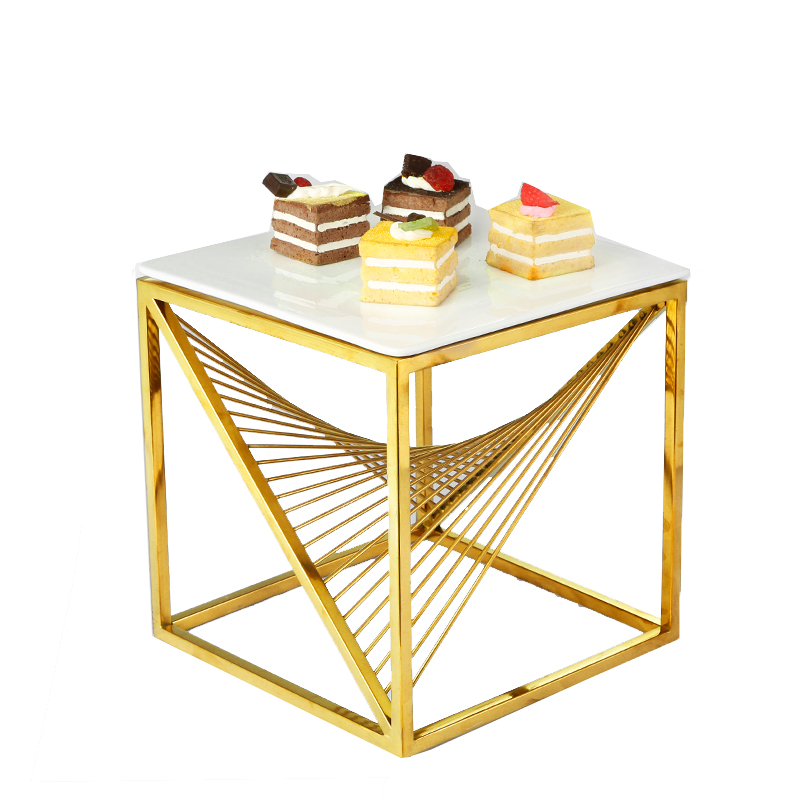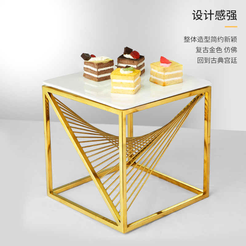 Golden Square Dessert Table Swing Piece Show Shelf Eu Style Cake Refreshment Rack Buffet Cold Dining Banquet Tea Chic