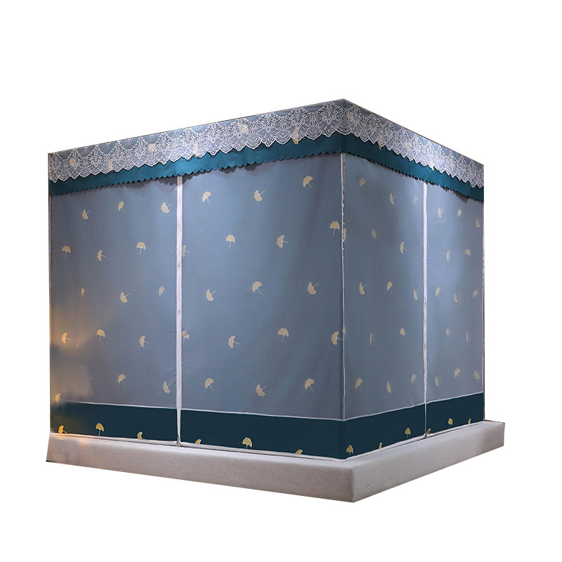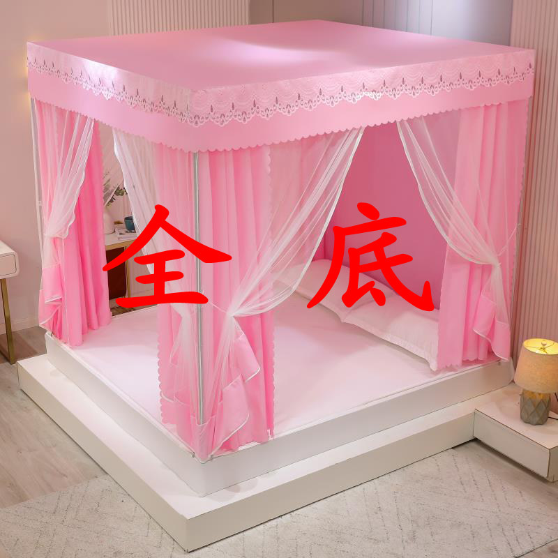 Solid color full bottom seat bed anti-fall zipper square account home bedroom blackout bed curtain mosquito net one-piece princess fully enclosed
