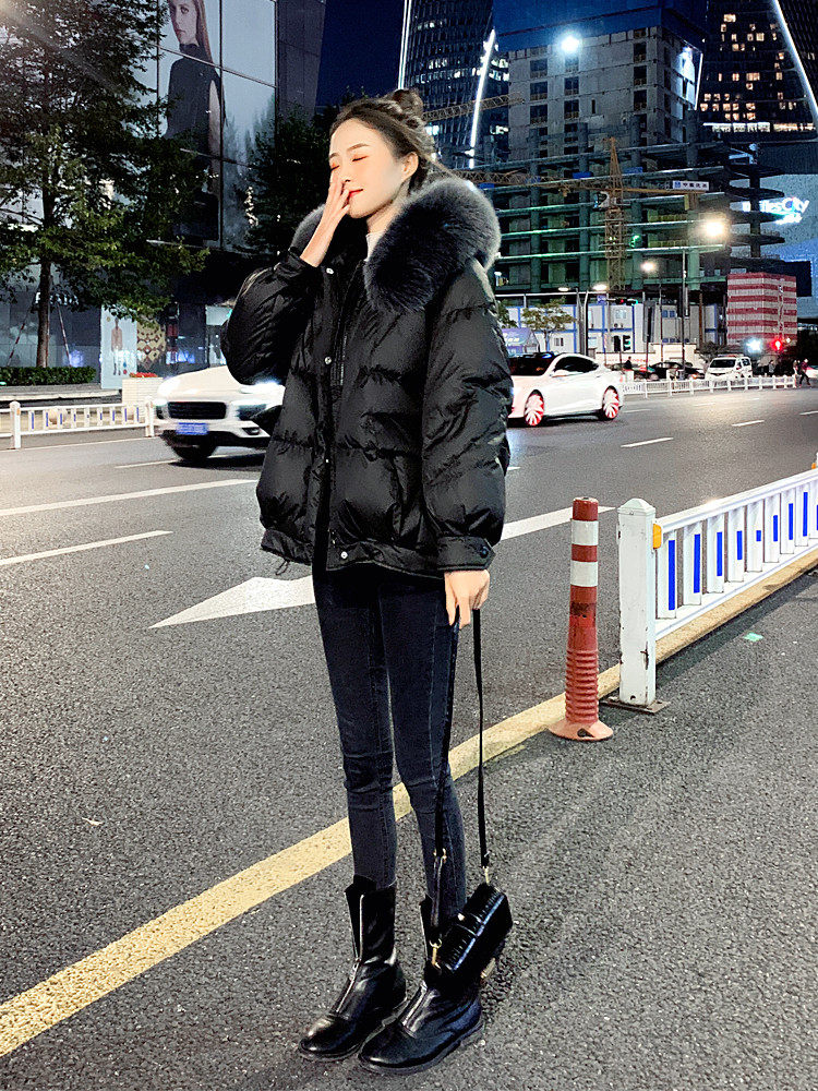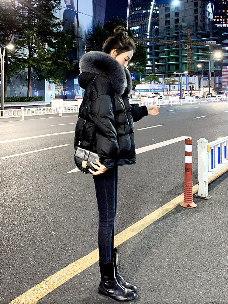 Langzi down jacket women's short winter 2022 new style big fur collar Korean version fashionable high-end white duck down jacket