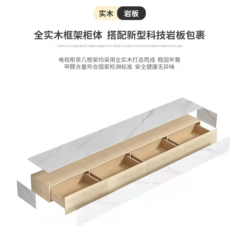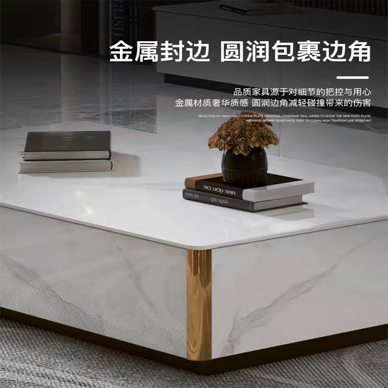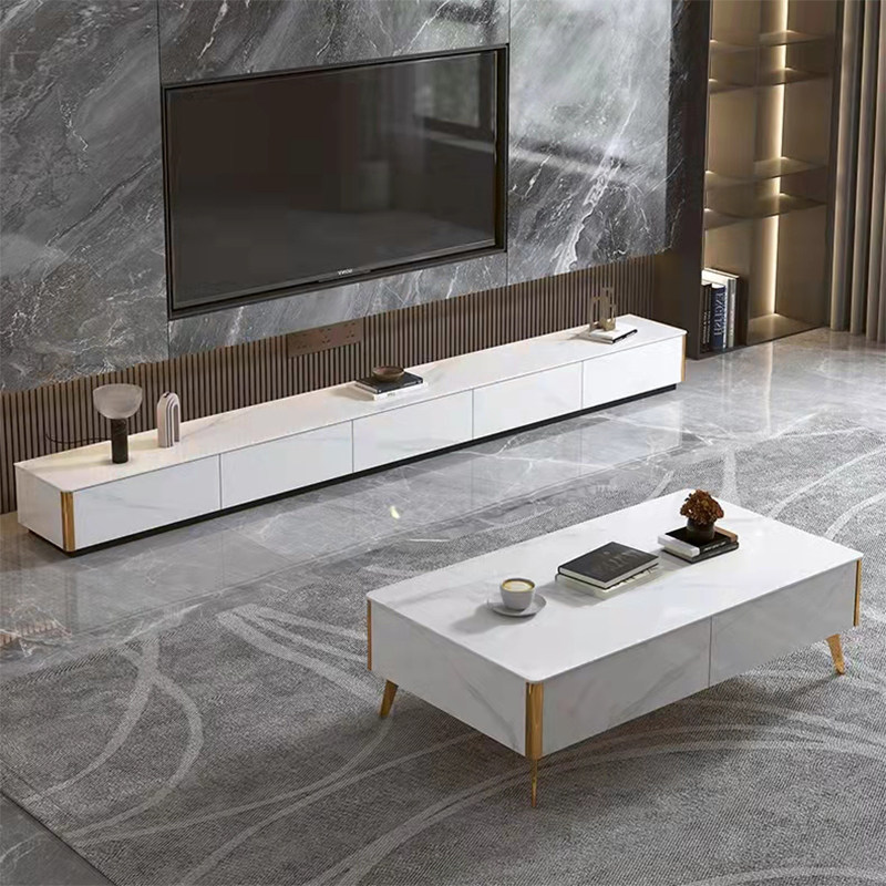 Minimalist slate floor coffee table TV cabinet modern light luxury small apartment floor cabinet arc living room floor 3 meters wall cabinet