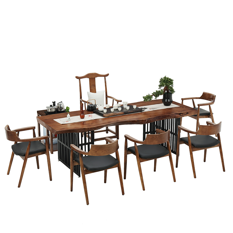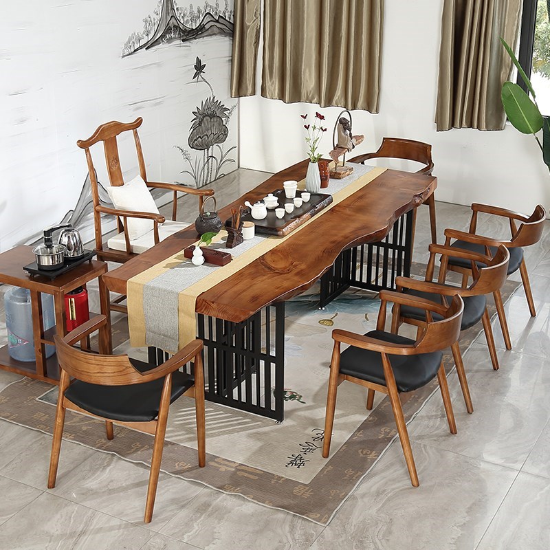 Simple and modern new Chinese log large board table whole board irregular office coffee table tea table solid wood tea table and chair combination
