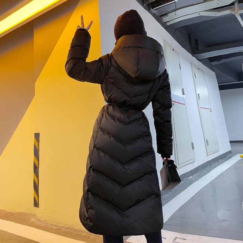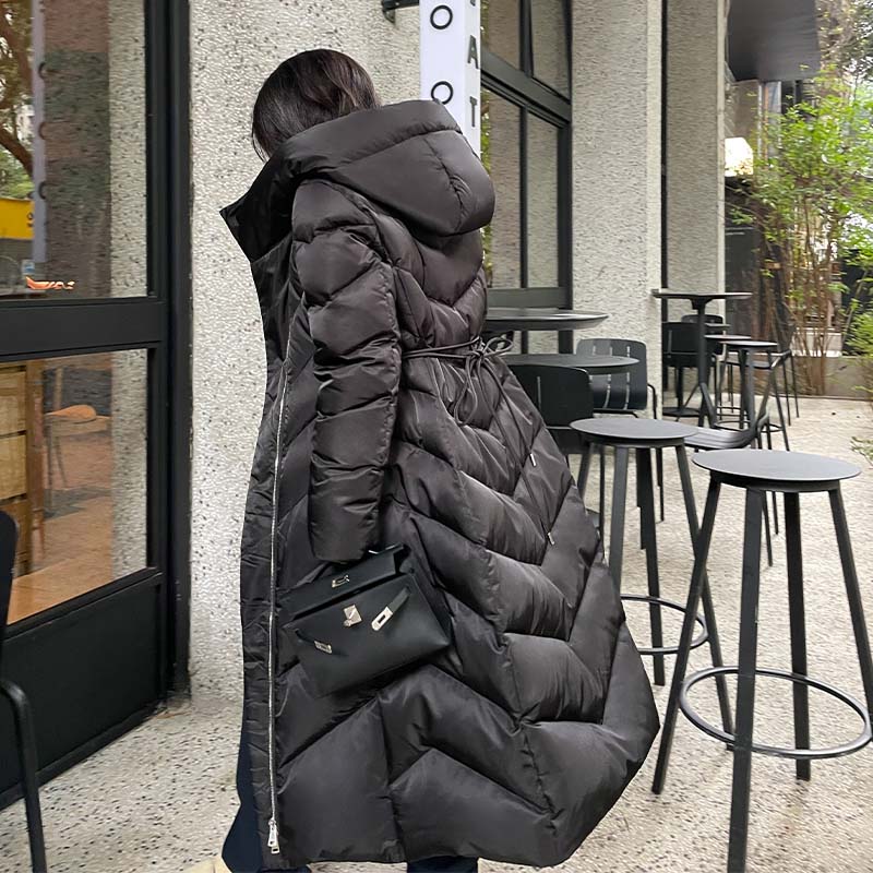 LEIYU long version down jacket woman 2021 Winter new black thickened closedown overlong knee jacket European and American ins