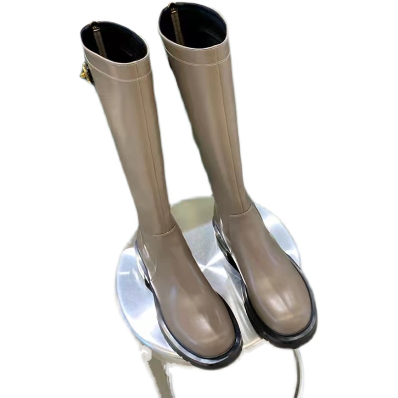 < high end production > gush small gold buckle high cylinder long boots with slim and large long legs though knee-length cylinder boots