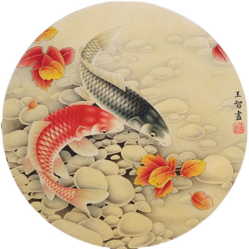 National painting finished work pen flower bird painting red leaf carp Four-ruler hopper square pure hand-painted real painting core unmounted and unframed