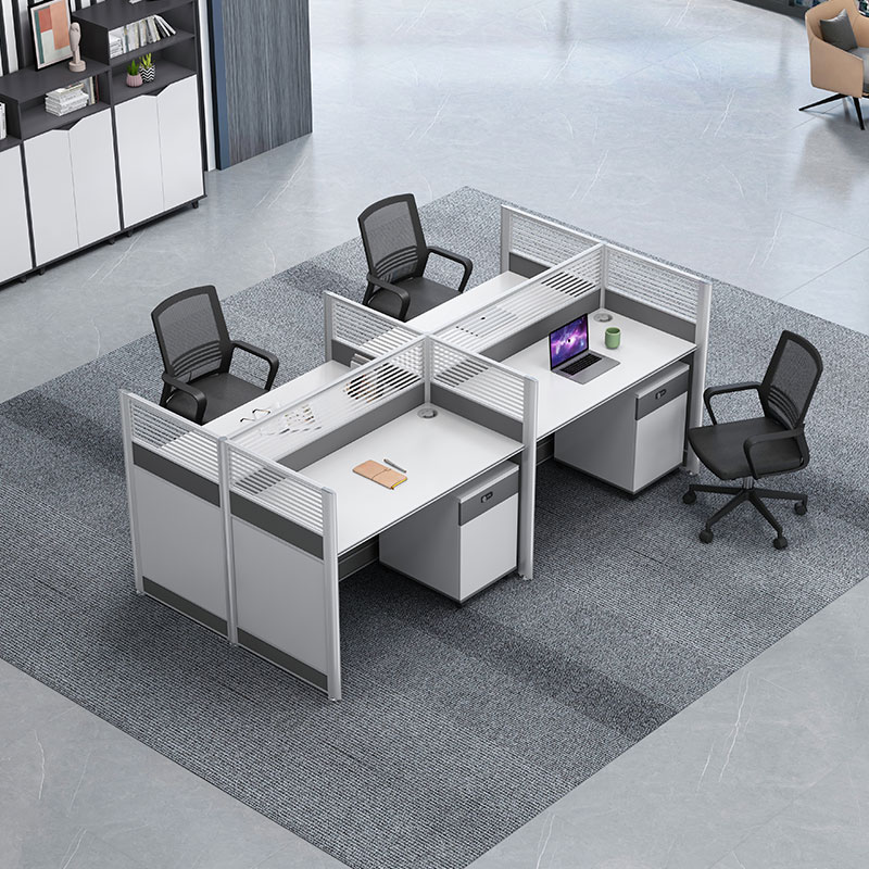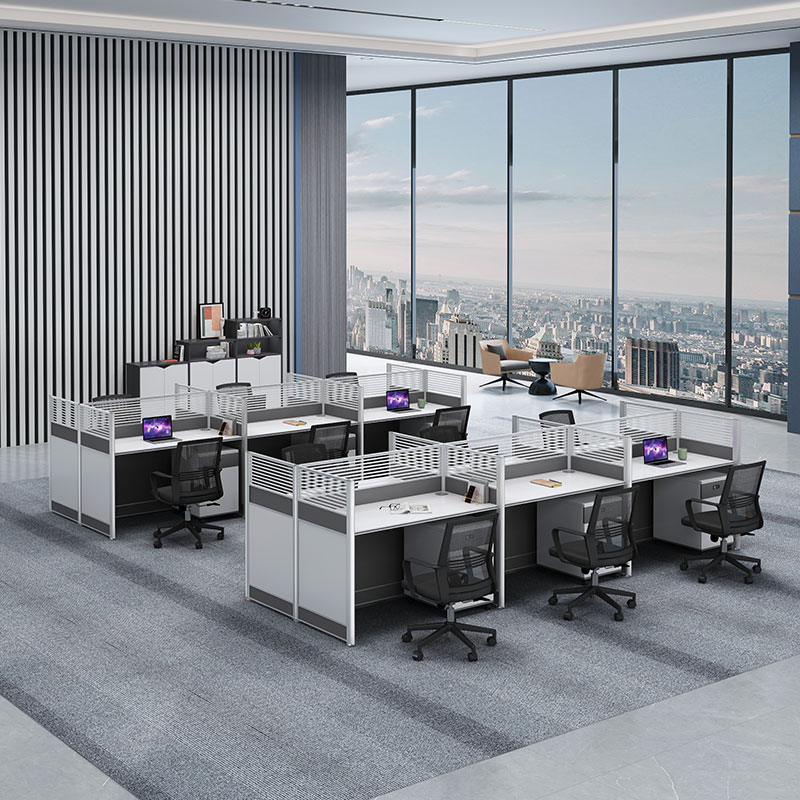 Staff Desk Chair Composition Brief Modern 4 People Work Position Staff Office Computer Desk Screen Holder