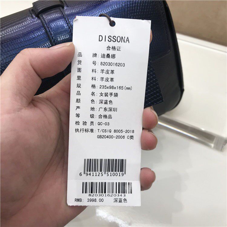 Dissona di Sanna 2020 Fall new women's bag dark blue sheepskin handbag 8203016203-Taobao