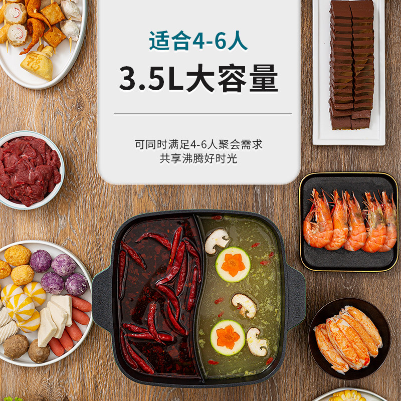 Pulse-fresh large capacity mandarin duck Home Not Stained Mutton Hotpot Multifunction Cuisine Pan 3 5L Thickened electric hot pot