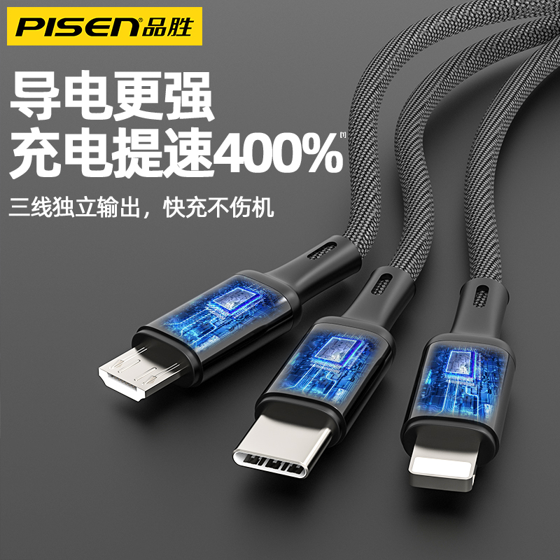 Pint Winning Charger three-in-one 66W Three-head quick-charging mobile phone fast-charging universal multifunction multi-head Android-mounted vehicle punching multipurpose one drag three with multiple outlet Apple Android quick suit II