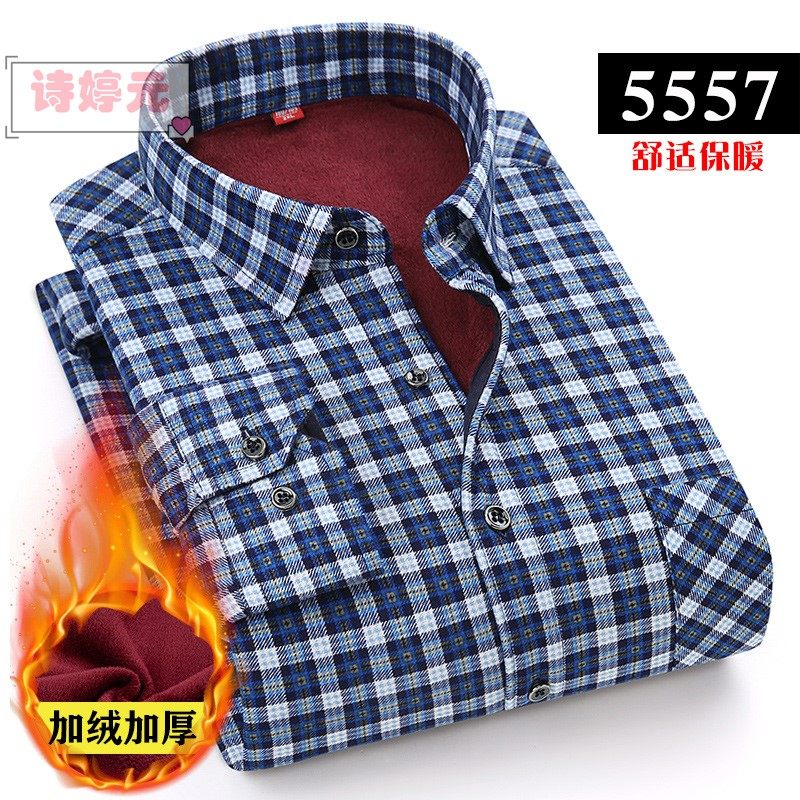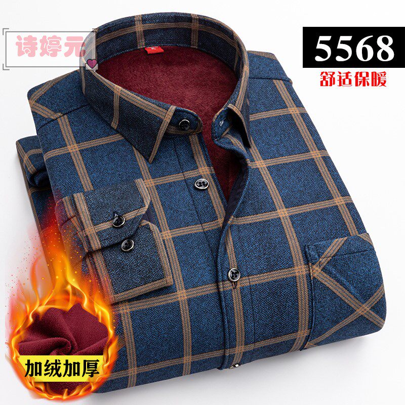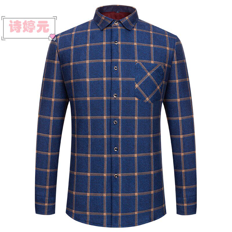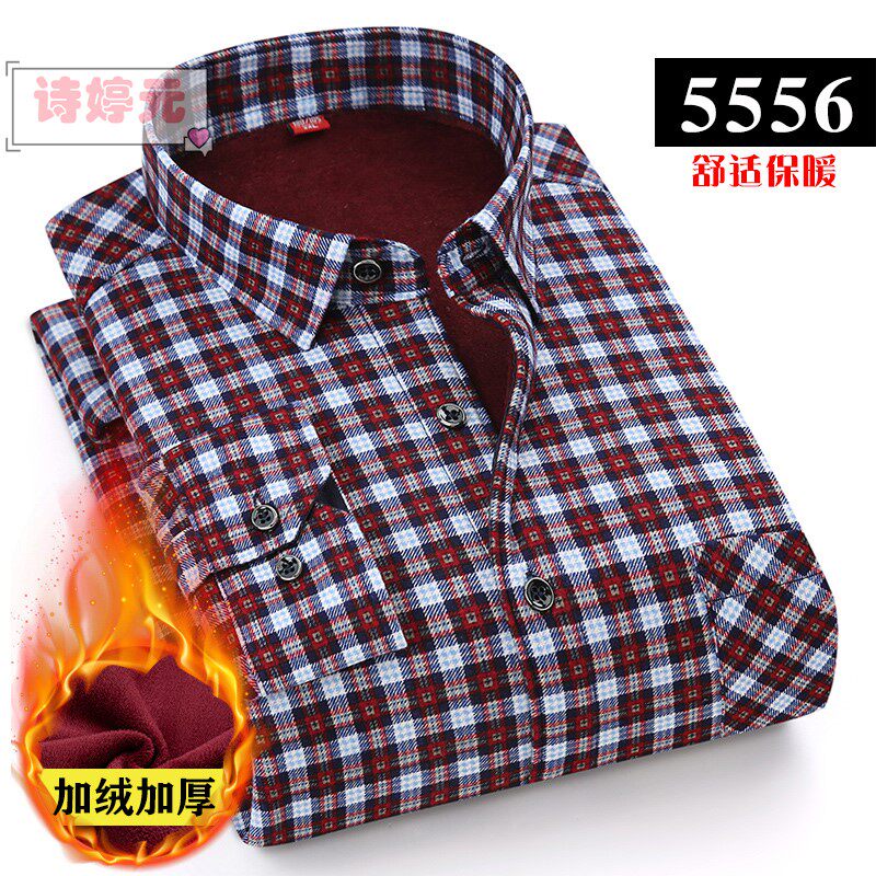 Men's long sleeve shirt grid men's clothing plus suede shirt thickened youth middle-aged elderly anti-cold fever clothes