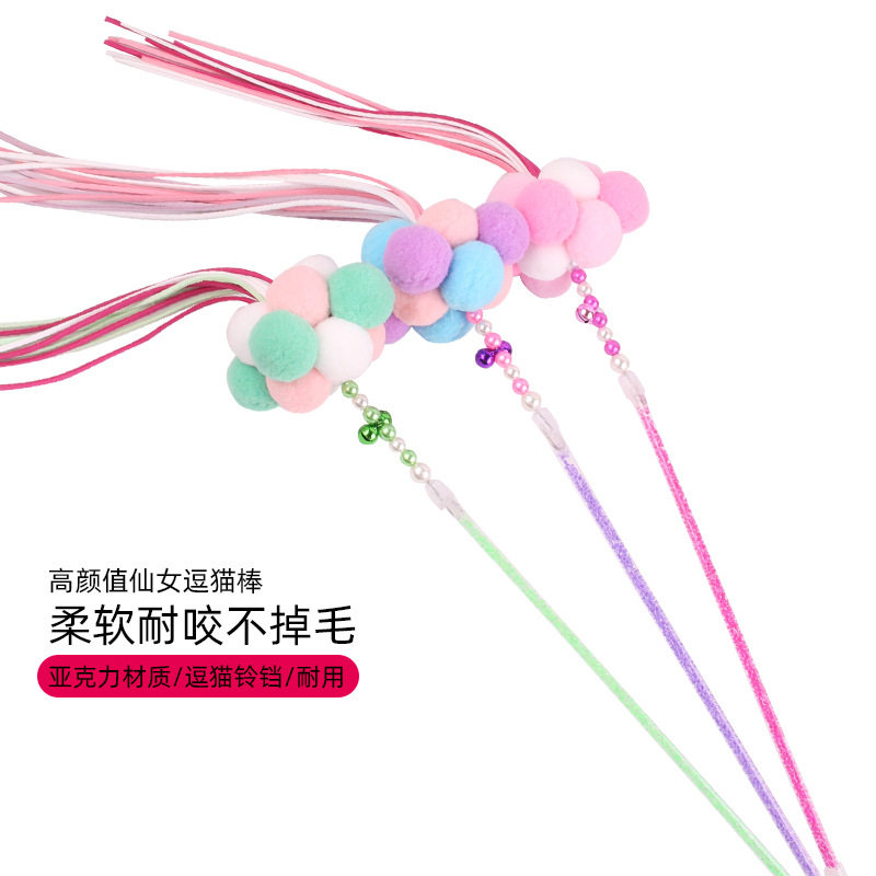 Pet cat toy soft plush ball ball Sue bell feather tease cat stick interactive cat toy fairy tease cat stick