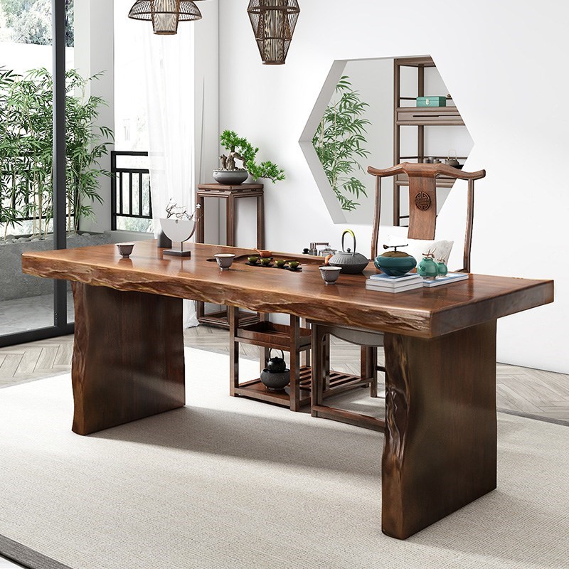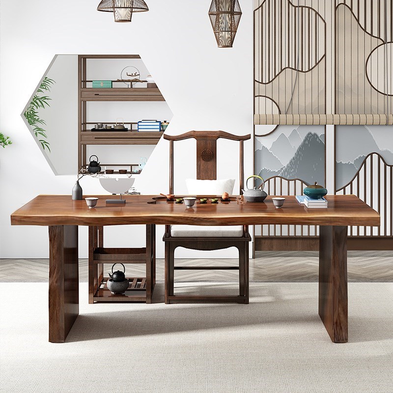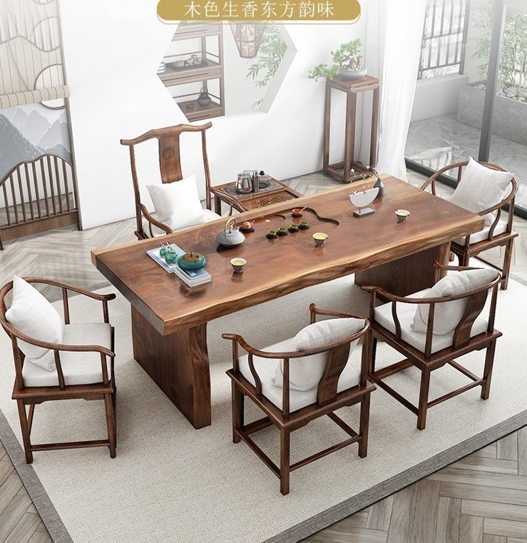 New Chinese-style living room solid wood large board tea table and chair combination home small modern Zen tea set set one tea table