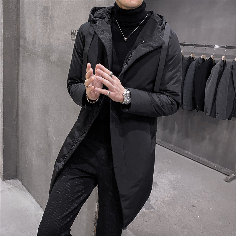 Winter 2021 new down clothes Men's medium long version trendy Han version Hull Handsome gas burst Thickened White Duck Suede Jacket