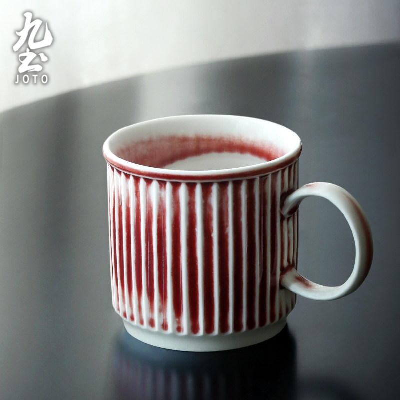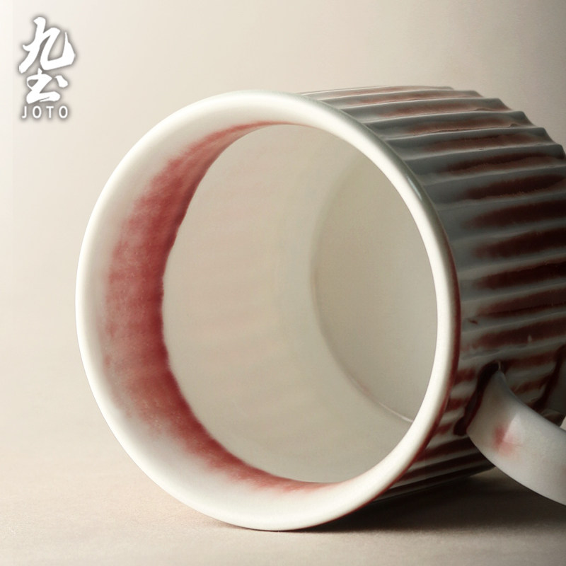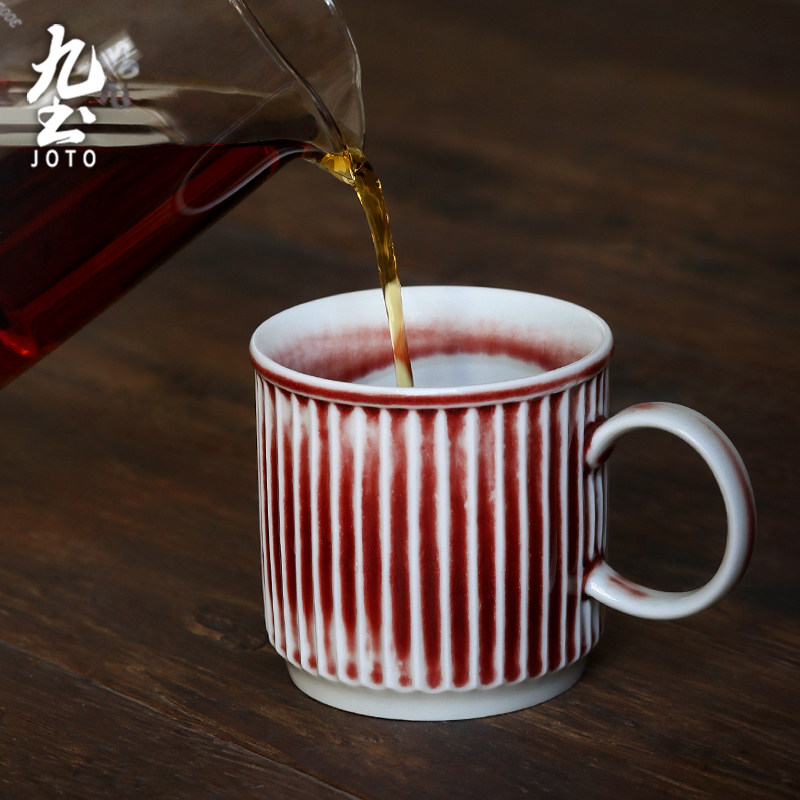 Nine Earth Hand Retro Kilo Kiln Changing Coffee Cup Home Vertical Stripe Water Cup Office Cup Creative Minima Fetch Iron Cup Milk Cup