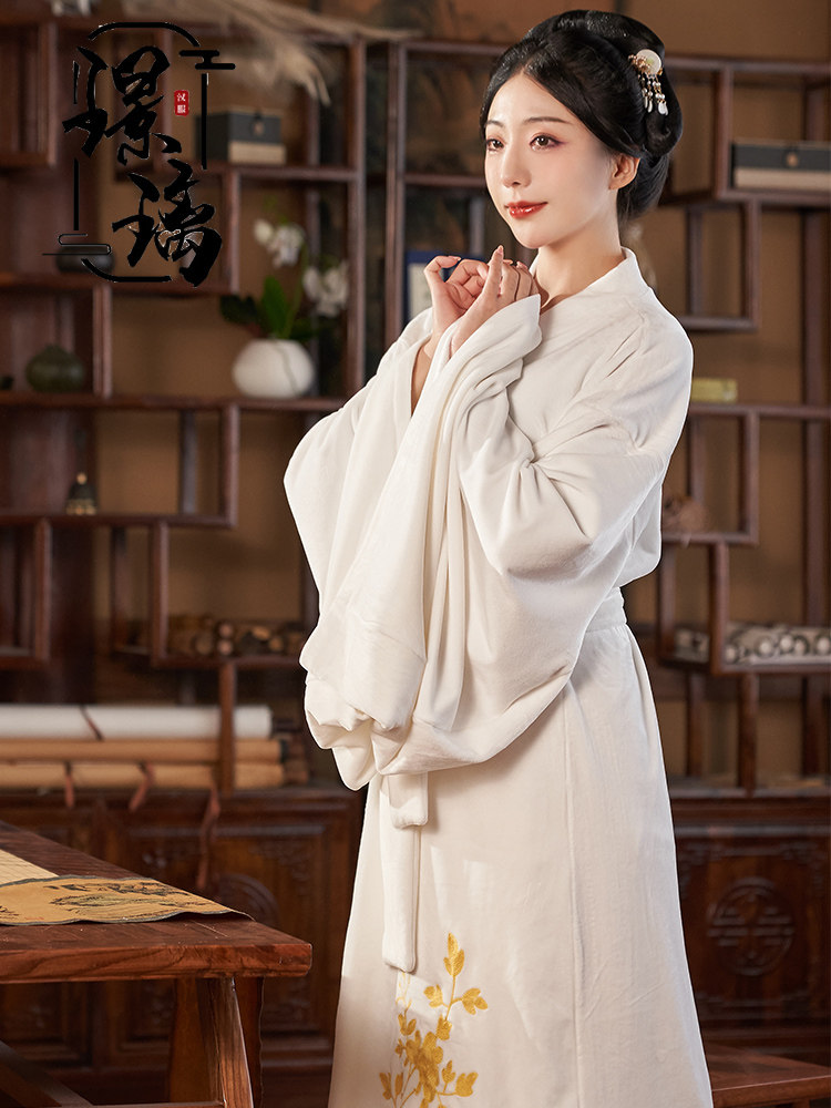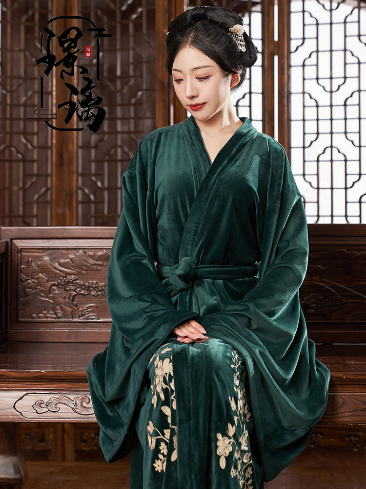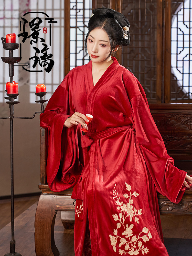 Glazed National Wind Winter Embroidered ancient windy double face flannel velvet bathrobe Chinese style morning gown sleeping robe and sleep-clad woman